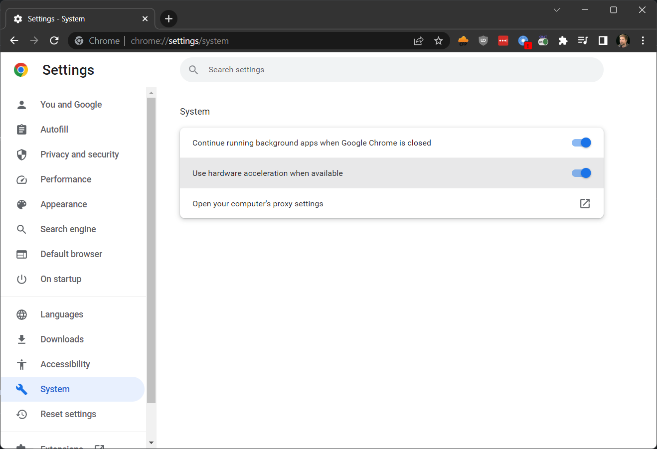 <figure><img src="https://2943598173-files.gitbook.io/~/files/v0/b/gitbook-x-prod.appspot.com/o/spaces%2F-MZHXv1G8N0MDxwotaT9%2Fuploads%2FB0iJkOaAF9zWIwWy2zeO%2Fimage.png?alt=media&#x26;token=fb0f2169-9549-4f3a-b94d-1ffe7ff2b520" alt=""><figcaption><p>Google Chrome's HWA setting</p></figcaption></figure>